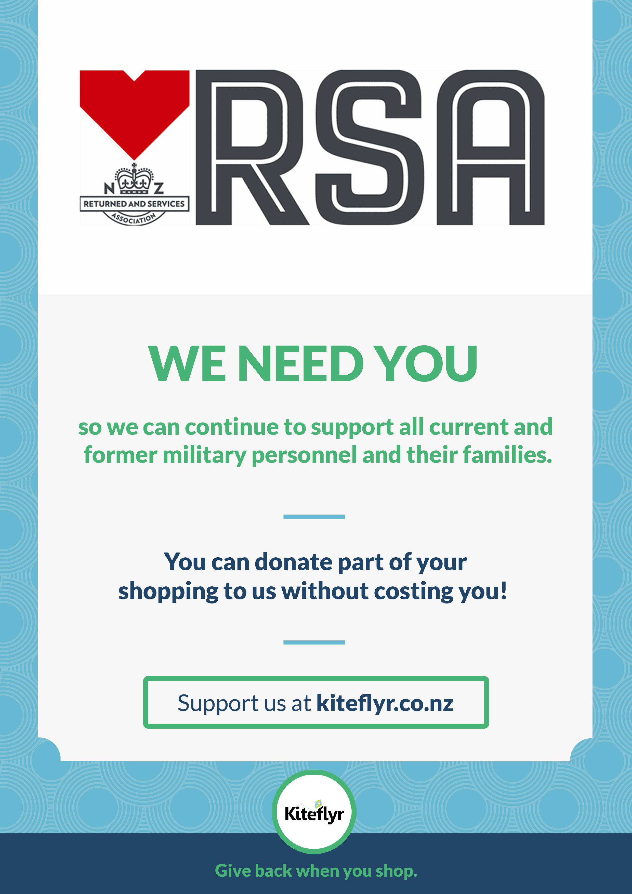 We have joined Kiteflyr – so should you! Kiteflyr is free to join and is an online retail market place where you can shop from stores such as Glassons, The Iconic, Book Depository, and more! The retail list will continue to grow as more retailers come on board. Shop now through Kiteflyr and the retailers … Continue reading Donate to the RSA for FREE!